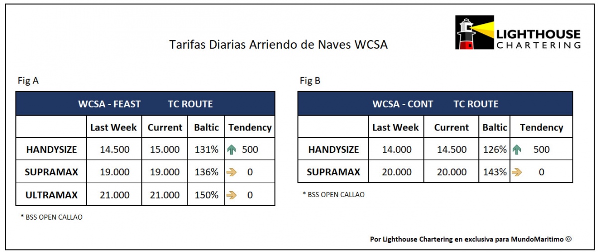 Cabe recordar que los datos de este informe estadístico fueron elaborados por el departamento de investigación de Lighthouse Chartering, que MundoMaritimo difunde semanalmente como parte de una alianza exclusiva. Puede contactarnos para informes especializados con información estadística detallada y actualizada sobre el desempeño de las tarifas de transporte marítimo de graneles a la Costa Oeste de Sudamérica. Principales antecedentes en [email protected].