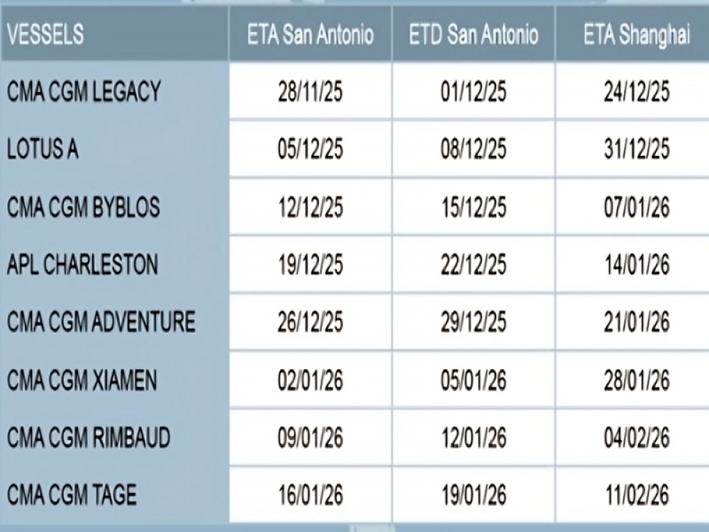 El servicio ‘ACSA 1 - Cherry Express’ incluirá 8 recaladas desde San Antonio, según se detalla en el recuadro (abajo).