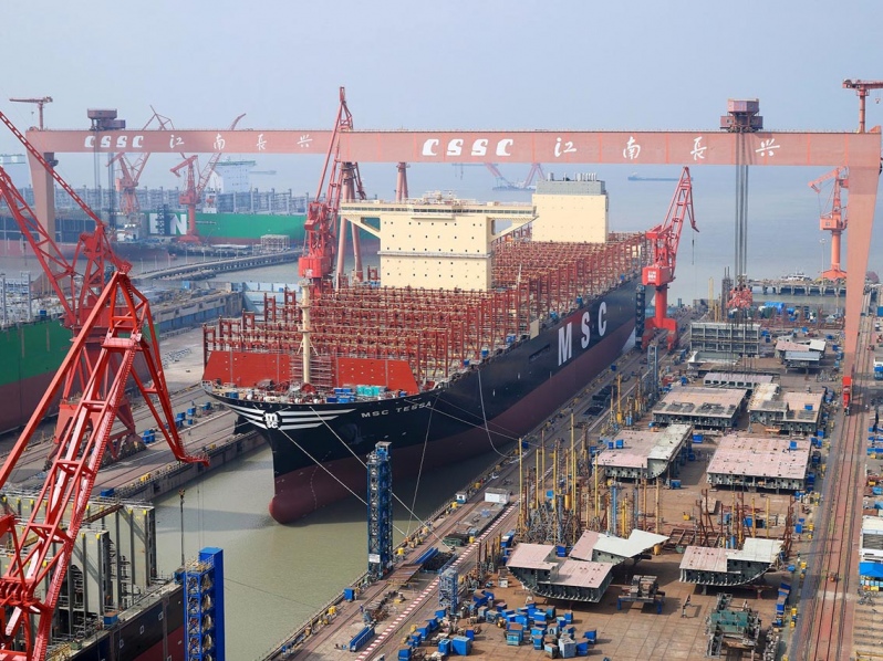 Entre las naves más relevantes previstas para entregar en 2026, ya se encuentran físicamente completados los primeros dos buques de las series de mayor tamaño que ingresarán este año al mercado. Destaca el primer Megamax propulsado por metanol construido por NACKS para OOCL, el “OOCL Wisdom”, con capacidad superior a 24.000 TEUs y botado en enero. Asimismo, avanza el “CMA CGM Notre Dame”, de 24.212 TEUs propulsado por GNL, primero de una serie de diez buques diseñados por MARIC para CMA CGM, correspondiente a la tercera generación (“MK-III”) de la serie Jacques Saade.