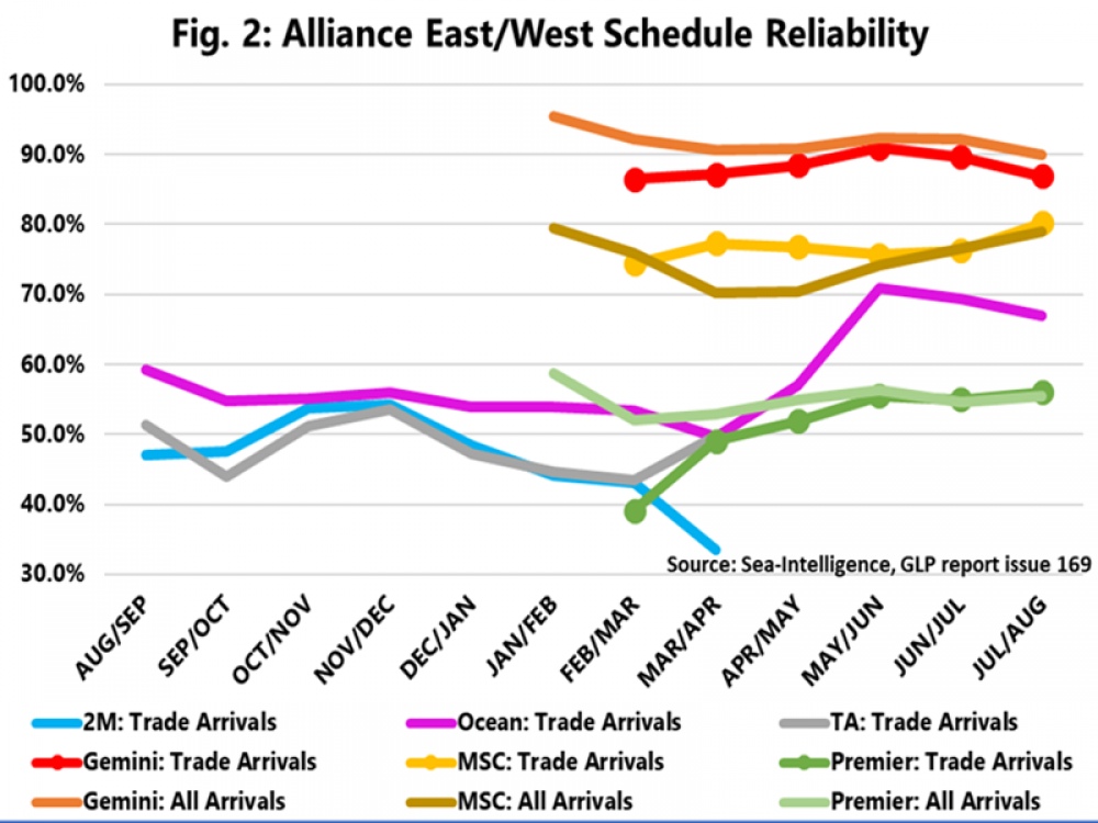 Tradicionalmente, los puntajes de las alianzas se basan solo en los arribos a las regiones de destino, pero dado que esa métrica no estaba disponible para las nuevas alianzas en febrero, se introdujo una nueva medición que incluye todas las recaladas, incluidas las realizadas en las regiones de origen en las rutas Este/Oeste.