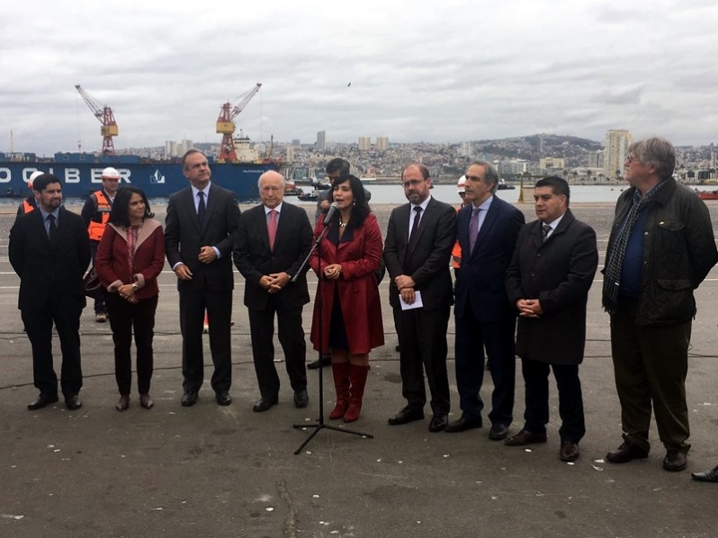 La ministra de Transportes y Telecomunicaciones, Paola Tapia y el ministro de Obras Públicas, Alberto Undurraga, realizaron una visita al Terminal 2 del Puerto Valparaíso, a la que se plegaron los senadores Ignacio Walker y Francisco Chahuán, quienes manifestaron su apoyo transversal al proyecto del Terminal 2 de del concesionario Terminal Cerros de Valparaíso (TCVAL) el cual actualmente se encuentra en medio del proceso de Evaluación Ambiental.