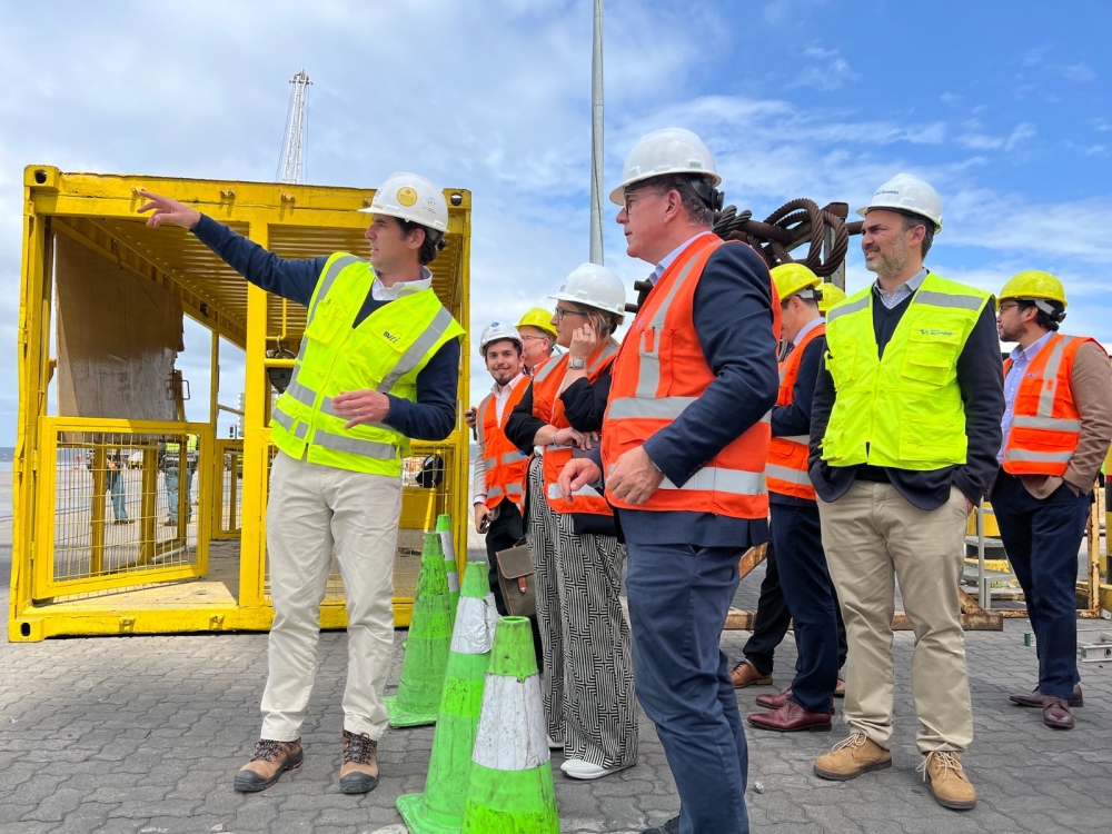 Como parte del seminario “Desarrollo de energía eólica marina en Chile: Una oportunidad para el crecimiento económico y una transición justa”, que se celebró el 4 de noviembre en Santiago, una delegación público-privada de Noruega y Dinamarca visitó el puerto de San Vicente, propiedad de la empresa estatal Puertos de Talcahuano y concesionado a San Vicente Terminal Internacional (SVTI).