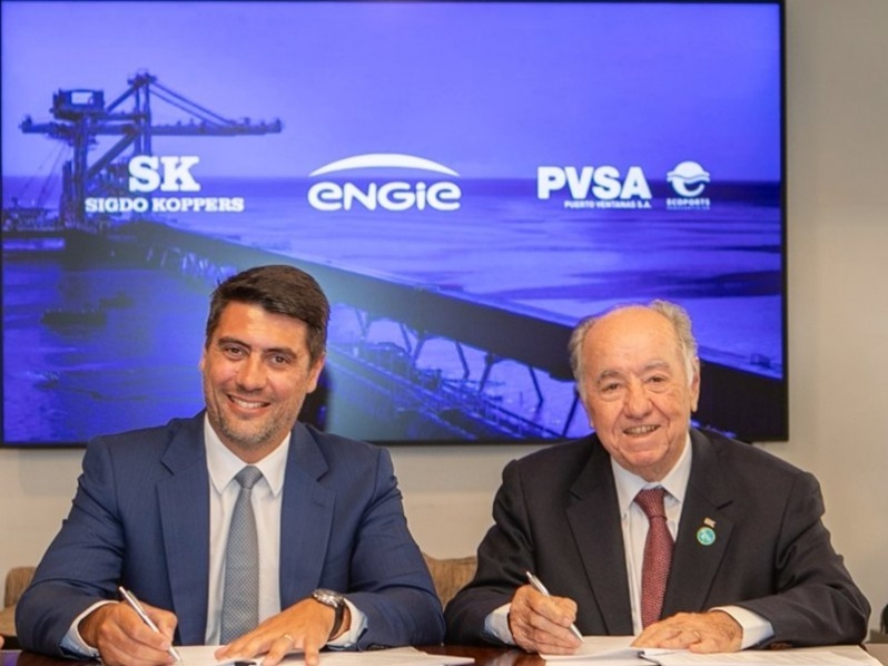 Juan Eduardo Errázuriz, presidente ejecutivo de Sigdo Koppers (SK), Jorge Oyarce, gerente general de Puerto Ventanas S.A. (PVSA); Juan Villavicencio, CEO de ENGIE Chile y Laïlla Ducousso, Managing Director Generation ENGIE Chile firmaron hoy un acuerdo que compromete la adquisición del terminal Puerto Andino de propiedad de ENGIE, transacción que debe ser aprobada, entre otros, por la Fiscalía Nacional Económica (FNE).