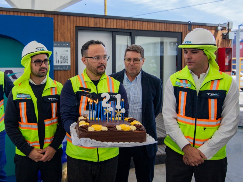 Terminal Puerto Arica (TPA) conmemoró su aniversario número 21 con una emotiva ceremonia que reunió a todos los colaboradores del puerto. La actividad estuvo marcada por el tradicional canto del cumpleaños feliz, símbolo de los 21 años de historia y compromiso que TPA ha forjado con la región y la macrozona andina.