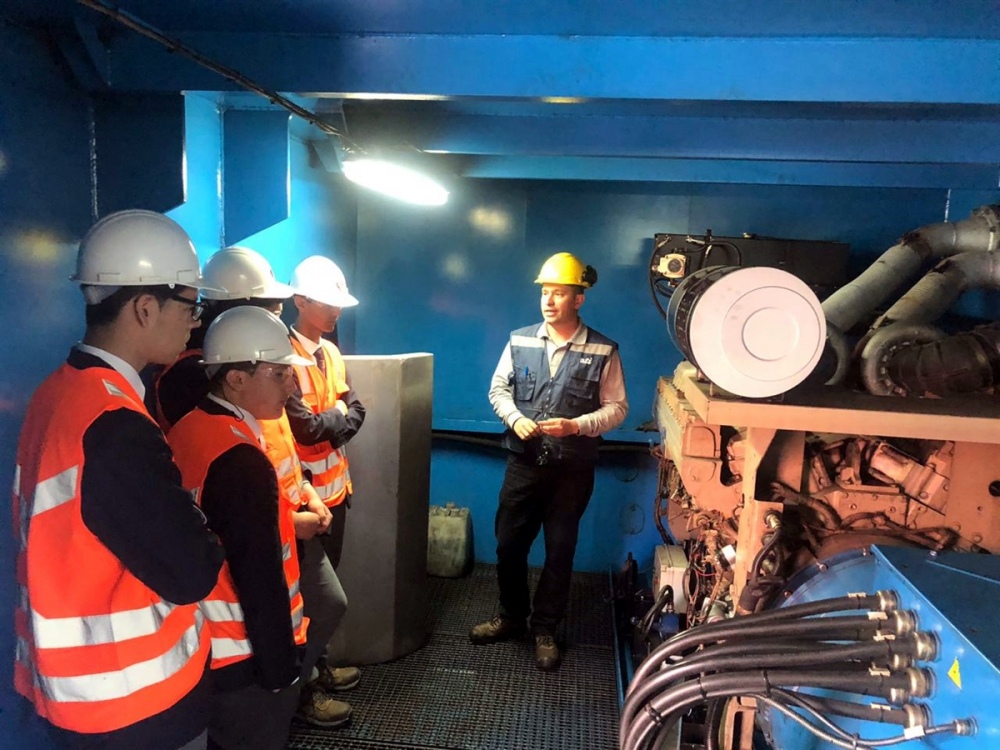 Los estudiantes de las carreras de Mecánica Industrial, Mecánica automotriz, Electrónica y Electricidad, tuvieron acceso a las salas de motores Diésel y eléctrica de las grúas. Supervisores de turno del área de Mantención de ATI los instruyeron sobre aspectos técnicos como las dimensiones del motor QST-30, detalles técnicos en la sala aislada y climatizada para evitar fallas por humedad; paneles de control y fuerza que tienen estos equipos móviles.