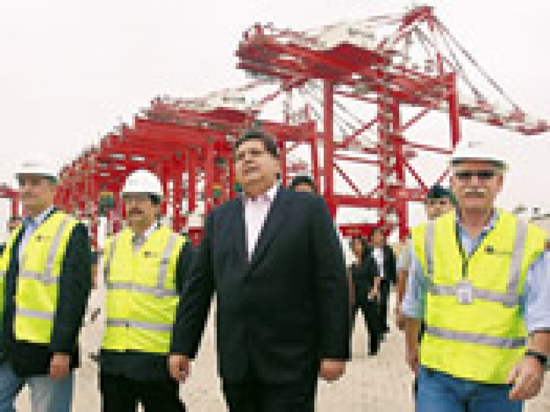 El presidente García señaló que el terminal de contenedores que se construye en el Muelle Sur va a contribuir de manera decisiva al lanzamiento internacional de Perú, así como también, en el comercio exterior.