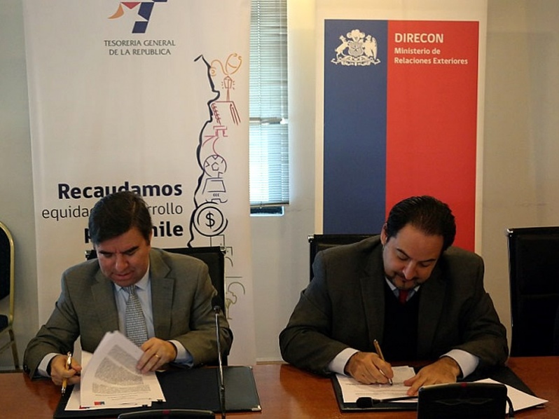 La Dirección General de Relaciones Económicas Internacionales (Direcon) y la Tesorería General de la República (TGR), suscribieron un a acuerdo mediante el cual las empresas exportadoras e intermediarias que realicen sus trámites de comercio exterior en el Sistema Integrado de Comercio Exterior -SICEX- podrán efectuar sus pagos electrónicos a través del Portal Web de la TGR.