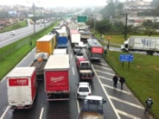 Los camioneros que protestaban en la autopista Anchieta, que conecta a Sao Paulo con Santos, provocaron un embotellamiento de 4 kilómetros, según el operador Ecovias.