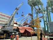 Puerto de Kaohsiung, Taiwán: Portacontenedor impacta con buque atracado y provoca colapso de grúa STS