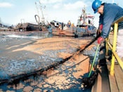 Sin embargo, la presencia de la película de material viscoso en la bahía obligó a fijar un área de seguridad y prohibir las faenas en caliente -soldadura, oxicorte- en los buques que se hallan en la bahía.