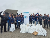 Estudiantes de la zona y representantes de distintas empresas de la Comunidad Logística de Puerto San Antonio participaron en la jornada de recolección de desechos organizada por la Armada de Chile en las playas del litoral central, entre Santo Domingo y Algarrobo, en el marco de la conmemoración del Día Internacional de Limpieza de Playas.