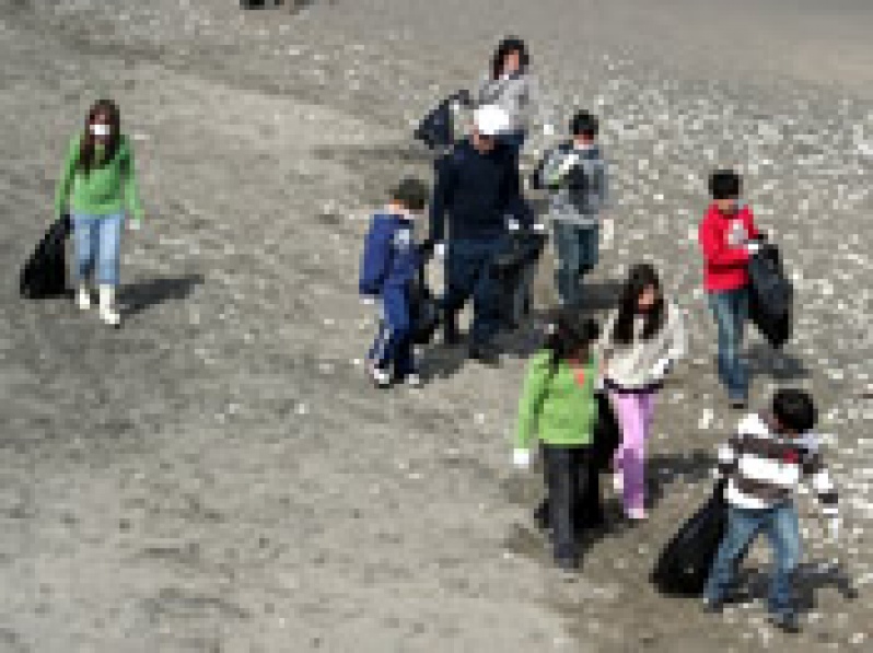 La actividad ambiental tuvo la colaboración de alumnos de un colegio de Maipú, de la Región Metropolitana, que anda de visita por el balneario para su clase sobre Naturaleza.