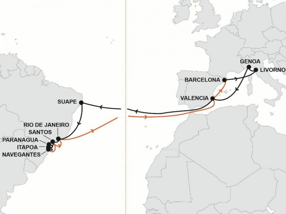 El nuevo itinerario del servicio incluye recaladas en los puertos de: Barcelona, Livorno, Génova, Valencia, Suape, Rio de Janeiro, Santos, Paranaguá, Itapoa, Navegantes, Santos, Rio De Janeiro, Valencia, Barcelona.