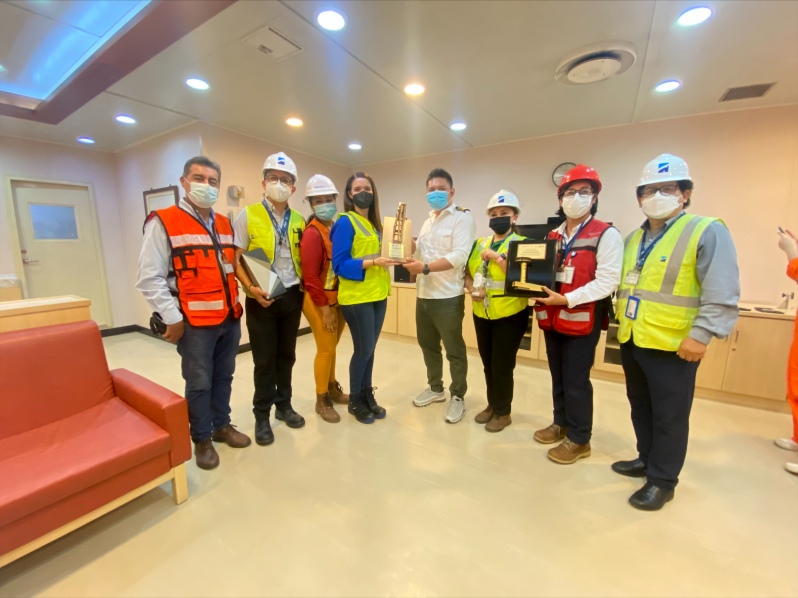 En representación del director general de la Administración del Sistema Portuario Nacional (Asipona) Lázaro Cárdenas, el Almirante Retirado Jorge Luis Cruz Ballado, hizo entrega de una placa conmemorativa la gerente de Comercialización, Maestra María Álvarez al Capitán Hung, Wei-Ming del navío “YM ENLIGHTENMENT”, quien ofreció la bienvenida a nombre de toda la tripulación.