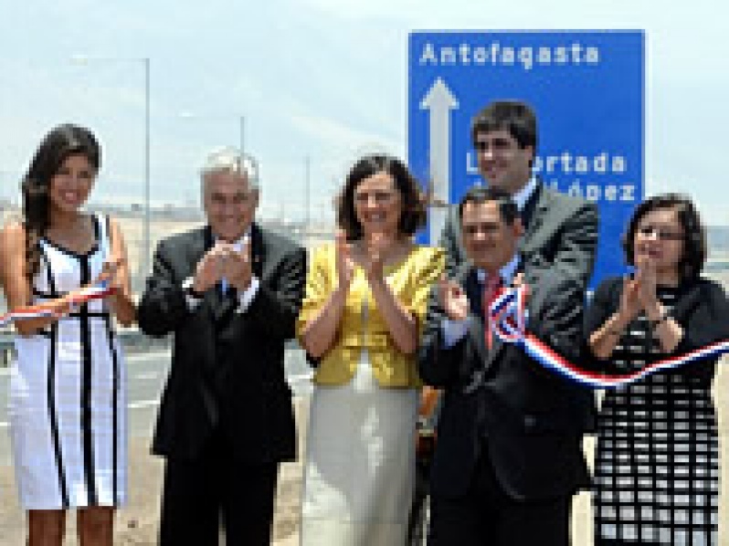 El Presidente Sebastián Piñera, y la ministra de Obras Públicas, Loreto Silva, llegaron hasta la región de Antofagasta para inaugurar la puesta en servicio de la Ruta 1 de Autopistas de Antofagasta, vía que forma parte de la red de autopistas concesionadas actualmente en construcción y que, con una extensión de 55 kilómetros, unirá la capital regional con el Puerto de Mejillones.