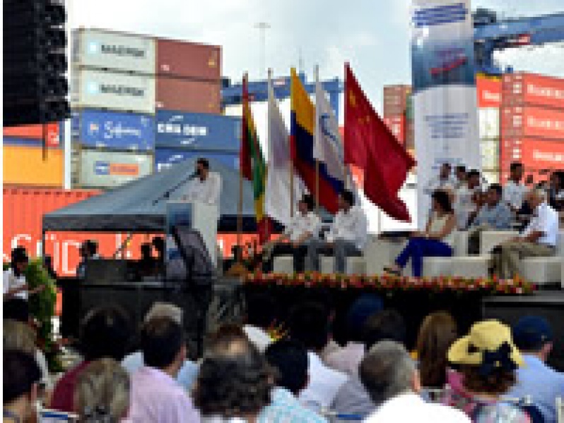 Los asistentes al evento presenciaron el desembarco de una de las cinco nuevas Grúas Pórtico Súper Post-Panamax, que arribaron a Cartagena el pasado 4 de agosto, cuya inversión fue de US$45,5 millones.
