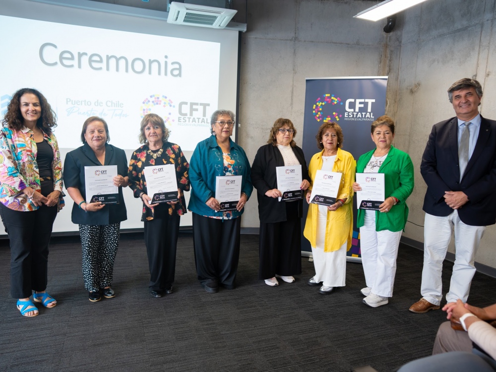 Al término del proceso de aprendizaje, los alumnos recibieron sus certificados en una ceremonia encabezada por la gerente de Gestión y Desarrollo de Personas de Puerto San Antonio, Consuelo Cánaves, y el rector del CFT Estatal San Antonio, Rodrigo Jarufe.