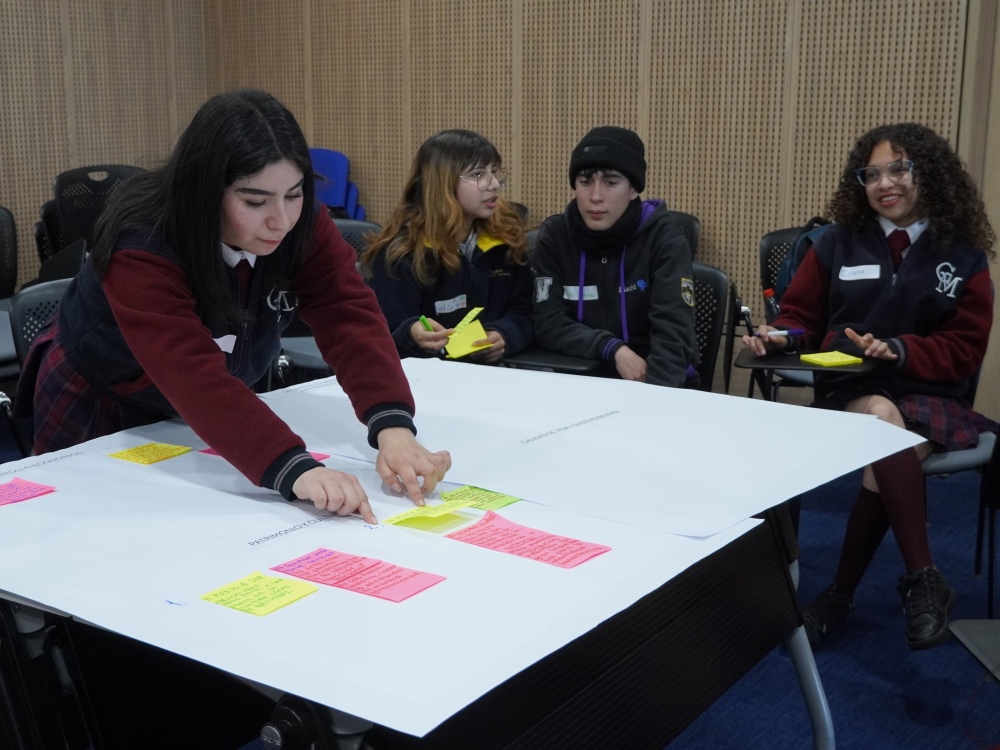 Un punto destacado de la jornada fue la perspectiva medioambiental impulsada por la delegación del Liceo Gabriela Mistral, cuyos estudiantes se refirieron a un diagnóstico socioambiental desarrollado en su comunidad escolar.