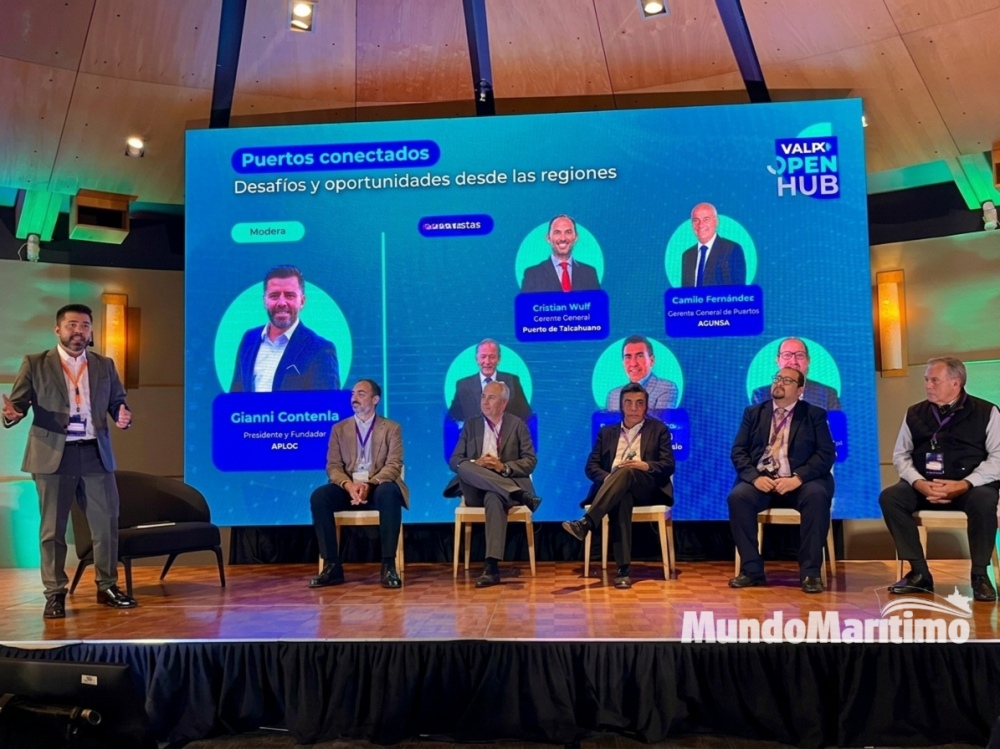En el evento “Valpo Open Hub” en el Casino Enjoy de Viña del Mar se realizó la charla “Desafíos y Oportunidades desde las Regiones”, instancia donde participó Cristian Wulf, gerente general de Puertos de Talcahuano; Camilo Fernández, gerente general de puertos AGUNSA; Pedro Torrejón, jefe de la Unidad de Competitividad y Sostenibilidad de Puerto de Valparaíso; Fernando Gajardo, gerente general (í) Puerto de San de San Antonio; Felipe Serrano, presidente Cámara Aduanera de Chile y Gianni Contenia, Presidente y Fundador de APLOG, quien moderó la conversación.